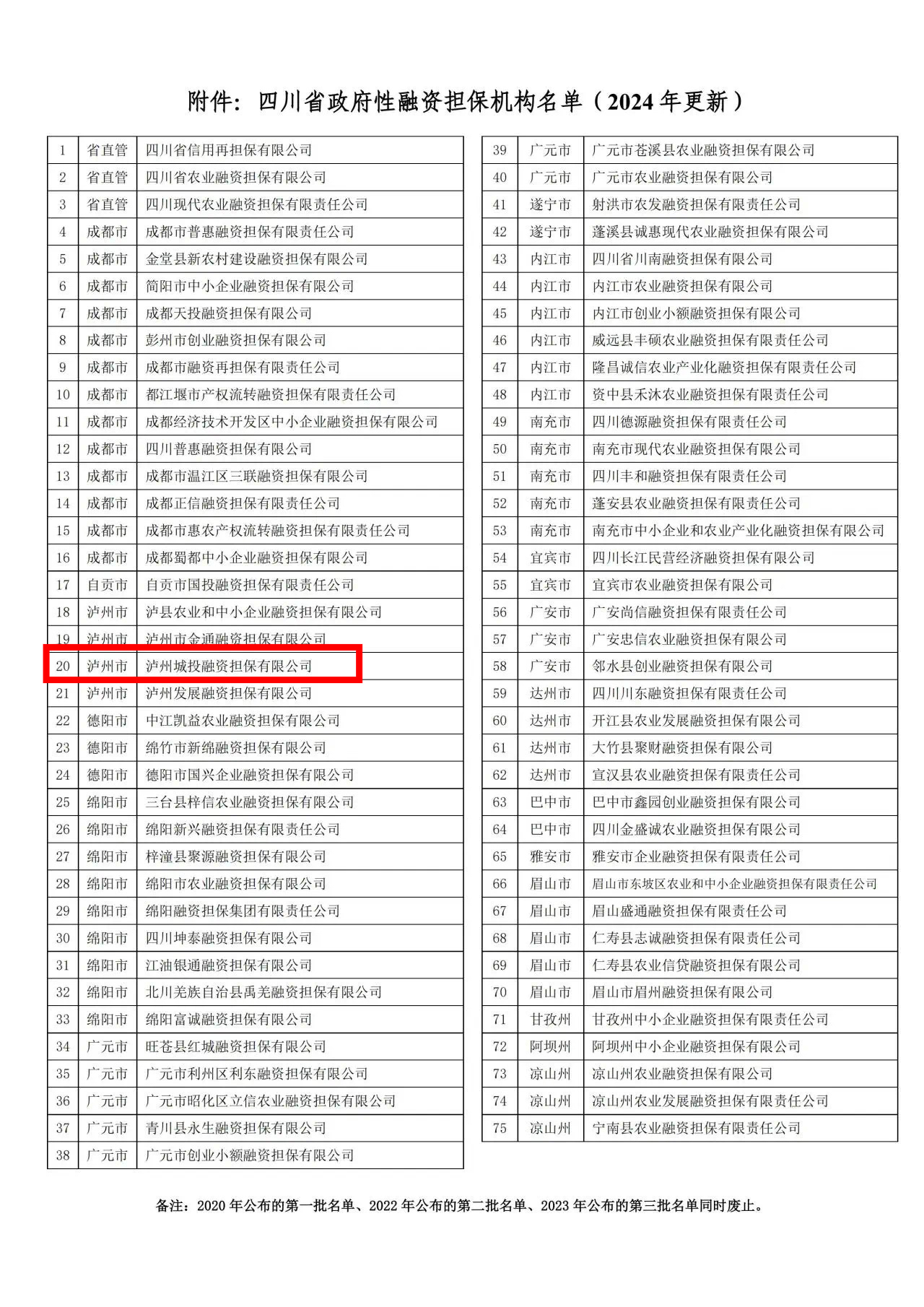 喜訊!瀘州城投集團融資擔保公司入選四川省政府性融資擔保機構