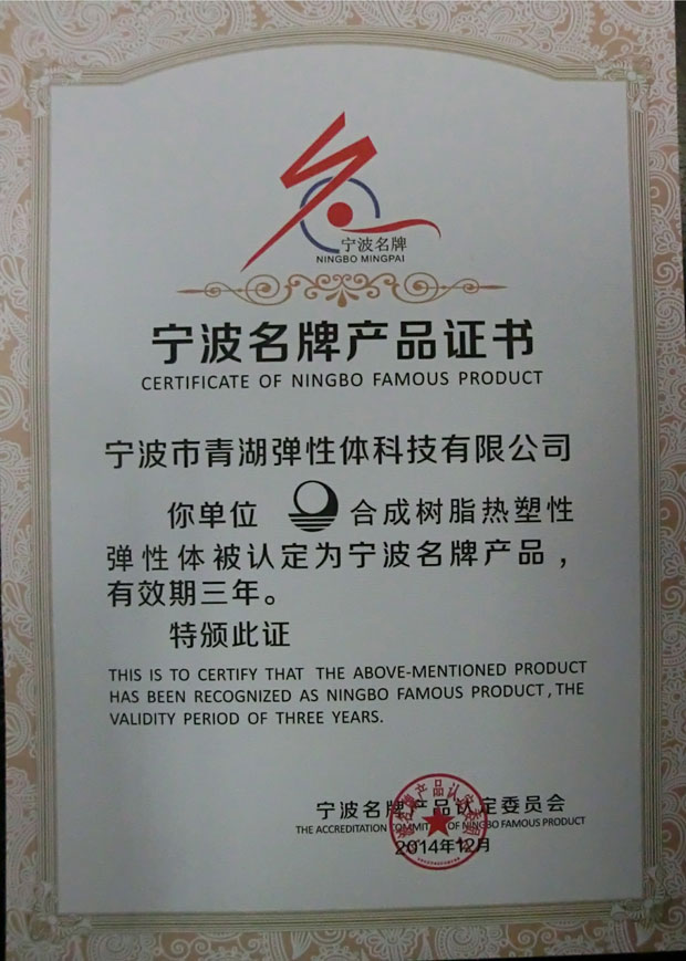 2016年2月26日,羊年春節(jié)剛剛結束,青湖雙喜臨門。由寧波名牌產品認定委員會評選的“2015年寧波名牌”正式出爐,“青湖”牌合成樹脂熱塑性彈性體位列其中。同時,公司也收到了寧波市計量測試學會頒發(fā)的“計量檢測能力確認合格證書”,市計量測試學會對公司在產品質量、經營管理、節(jié)能降耗等方面的計量檢測能力給予了肯定。